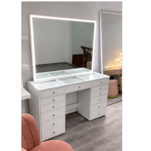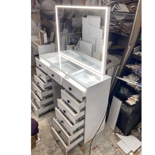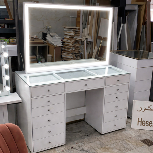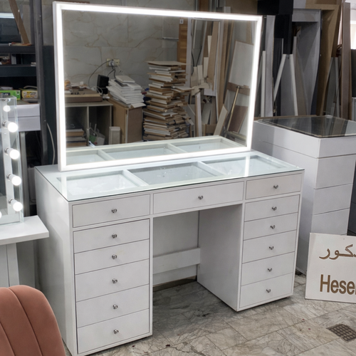 میز آرایشی ، آرایش 13 کشو مدل کیارا با آینه بک لایت MDF